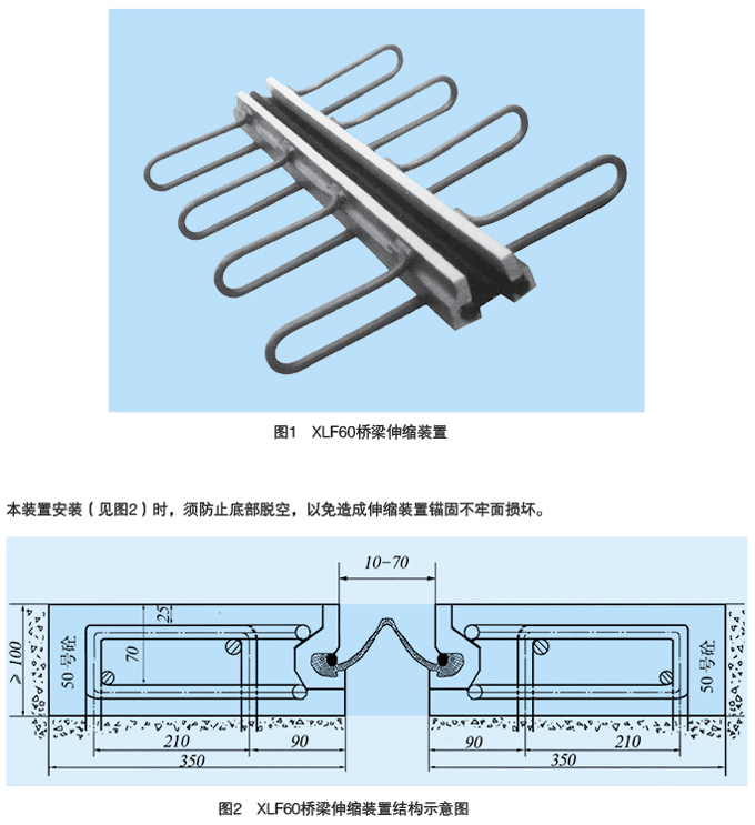 設(shè)計(jì)伸縮置為0^60mm,其結(jié)構(gòu)簡(jiǎn)單、堅(jiān)固附用、行車(chē)平衡,適用于中小橋梁。(圖1)