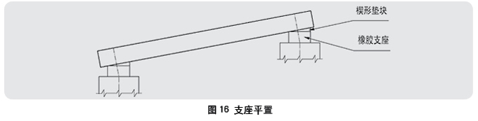 4.1普通板式橡膠支座的安裝 7.1.1現(xiàn)澆梁橡膠支座的安裝 A、先將支座墊石頂面清理干凈,若激臺墊石的標(biāo)高差距過大,可用水泥砂漿調(diào)整。 B、在支座墊石上按設(shè)計(jì)圖標(biāo)出支座位置中心線,同時在橡膠支座上也標(biāo)出十字交叉中心線,將橡膠支座 的中心線與墊石中心線相吻合,支座即就位準(zhǔn)確。 C、在澆注混凝土梁體前,在橡肢支座上設(shè)一塊比支座平面稍大的支承鋼板、鋼板焊錫固筋與梁體連接。 將支承鋼板視為現(xiàn)澆梁模板的一部分進(jìn)行澆注。為防止漏漿,可在支承鋼板與模板四周空隙處,用棉砂、油灰 或其它物質(zhì)填設(shè)。 8.1.2預(yù)制梁橡膠支座的安裝 A、首先將橡膠支座按設(shè)計(jì)要求直接放置在支座墊石上,墊石上面必須亊先清理干凈,并保證平整,然后 將上部構(gòu)造直接安放在支座上。 B、架梁落梁安裝時應(yīng)平穩(wěn),防止支座偏心受壓或產(chǎn)生初始剪切變形。 C、在T型梁安裝時,若支座比梁肋底寬(應(yīng)盡量避免),則應(yīng)在支座與梁底之間用鋼筋混凝土墊塊或厚 鋼板作過渡,以免橡膠支座受力面積減少造成應(yīng)力集中。 8.1.3普通板式橡膠支座的安裝亊項(xiàng) A、支座安裝時,必須保證位置準(zhǔn)確,調(diào)整時,避免產(chǎn)生過大的剪切變形,安裝時間最好在相當(dāng)于全年平 均氣湛時進(jìn)行,以保證因低溫或高溫時造成支座偏離中心的位置不致過大,減少剪切變形。 如必須在高溫或低溫時安裝,可采取以下措施。 a待到全年平均氣溫時,頂起主梁、將支座調(diào)整到中心位置。 b在安裝時根據(jù)當(dāng)時氣湛計(jì)算使支座產(chǎn)生預(yù)變形。 c也可以在設(shè)計(jì)選用橡膠支座時,適當(dāng)增高支座髙度,使其比原設(shè)計(jì)支座的剪切變形量大。 B、要保證支座和墩臺及主梁緊密結(jié)合成一體,與橡膠支座接觸的上部構(gòu)造底面和墩臺面必須清潔平整。 如不平整要用水泥砂漿找平。 C、使用普通板式橡膠支座一般沒用固定纗與活動端之分,使用等髙支座時,上部構(gòu)造的水平位移由同一 片梁兩纗支座的剪切變形共同完成,各承擔(dān)一半。也可用厚度較小的橡膠支座作固定支座。 D、當(dāng)梁體在縱向有坡度時,可按以下幾種情況分別處理。 a梁體縱坡<=1%時,縱坡由支座墊石調(diào)整支座斜置。如圖15 b梁體縱坡時,在梁底與支座之間粘結(jié)一塊與梁縱坡一致的楔型墊塊,支座平置。如圖16 也可采用梁底一端削去與坡度相一致的一角,在另一端補(bǔ)上與削去部分相等的一角,使支座平置。如圖17 C為了方便施工可直接選用坡度板式橡膠支座。 E支座安裝時,要考慮到以后更換調(diào)整橡膠支座的需要,通常采用在支座周邊空間設(shè)置各種凹樁以便安 放千斤頂。4.2聚四氟乙烯滑板式橡膠支座的安裝 7.2.1四氟板式橡膠支座的構(gòu)造與聯(lián)接 a構(gòu)造:四氟支座的整體結(jié)構(gòu)有“封閉型”和“簡易型”兩種。對城市橋梁及紫外線輯射、空氣污染與 粉塵嚴(yán)重地區(qū),選用封閉型結(jié)構(gòu),其它場合可采用簡易型。簡易型和封閉型分別見圖18和圖19。 b聯(lián)接:四氟板式橡膠支座下鋼板的聯(lián)接可在激臺支承墊石上頂留相應(yīng)凹坑。架梁時下鋼板用環(huán)氧樹脂砂 漿粘結(jié)于坑內(nèi),四氟板式橡膠支座的上鋼板澆梁施工時,可采用鋼板焊描固筋一同澆注。預(yù)制梁施工時,上鋼 板用環(huán)氣樹脂砂漿與梁底粘結(jié)。 環(huán)氧樹臘砂漿配合比(重量比) 環(huán)氧樹臘(6101 ) : 100,乙二胺:8—10或三乙烯四胺:8—12 苯二甲酸二丁脂:12 水泥或石英粉或細(xì)砂:250-300 8.2.2四氟板式支座安裝應(yīng)注意亊項(xiàng) 四氟板式支座的安裝方法與普通板式支座基本相同,但應(yīng)注意下列亊項(xiàng)。 a四氟板式支座系作活動支座用,應(yīng)同普通板式支座(作固定支座)配套使用。安裝時應(yīng)精心細(xì)致。 支座應(yīng)按設(shè)計(jì)支承中心準(zhǔn)確就位。梁底鋼板與支承墊石(或下鋼板)頂面盡可能保持平行,同支座上下 面全部密貼;同一片梁的各個支座位置應(yīng)在同一平面上;避免支座的偏受壓、不均勻支承與個別脫空現(xiàn)象。 b與四氟板接觸的不銹鋼板表面不允許有損傷、拉毛現(xiàn)象;以免增大摩擦系數(shù)及損壞四氟板。 c支座四氟面的儲油凹坑內(nèi),安裝時應(yīng)涂刷不易揮發(fā)的“5201桂脂”作潤滑劑以降低摩擦系數(shù)。 d支座與不銹鋼板的位置視安裝時溫度而定,若不銹鋼板有足夠長度,則任何季節(jié)都可使支座居不銹鋼板 中心位置。 e落梁時,為防止梁與支座發(fā)生縱橫向滑移,宜用木制三角勢塊在梁體兩側(cè)加以定位,待落梁工作全部完 畢后拆除。 f上部結(jié)構(gòu)為連續(xù)體系時,固定端橡膠支座為提高可靠度,防止固定支座的縱橫滑移,可設(shè)置防爬裝置。